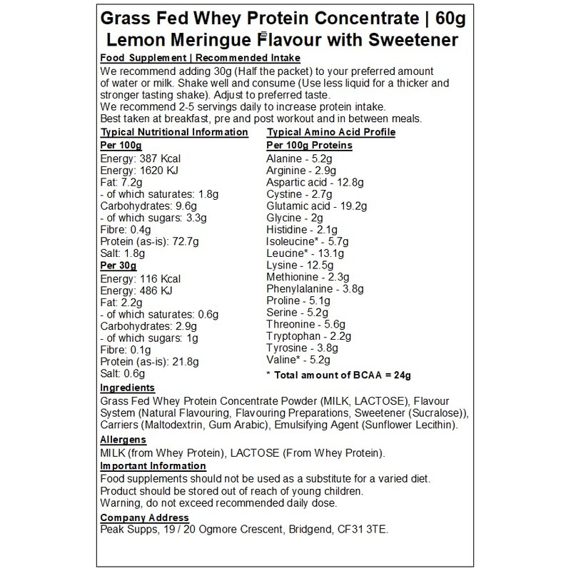 Whey Protein Concentrate 80% - Lemon Meringue - Grass Fed (60g (Sample))