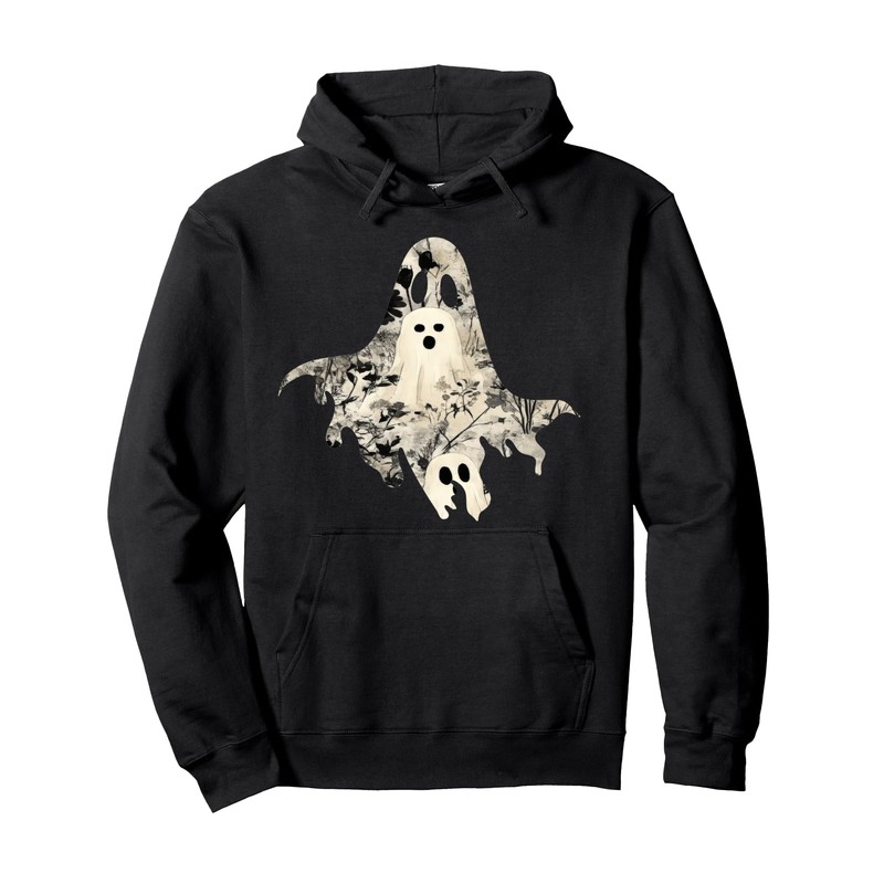 Whimsical Ghost and Floral Pattern – Perfect For Gothic Fans Pullover Hoodie