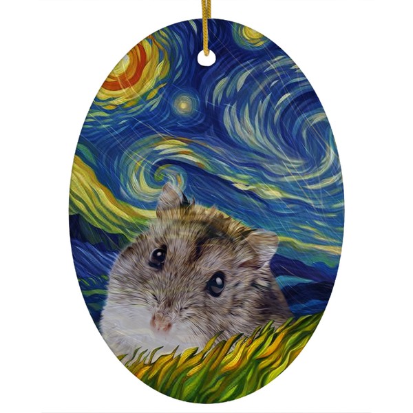 Whimsical Night Sky Winter White Dwarf Hamster Christmas Ornament White Oval Ceramic - Impressionist Pet Portrait Memorial Keepsake Gifts for Hamster Lovers