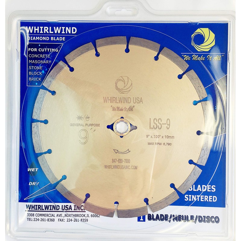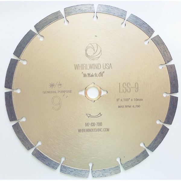 Whirlwind USA LSS 9 inch Dry or Wet Cutting General Purpose Power Saw Segmented Diamond Blades for Masonry Brick/Block Pavers Concrete Stone (9")