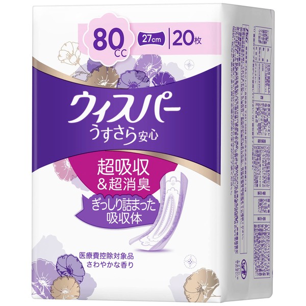 Whisper Lightweight Safety 80cc 27cm 20 Sheets (For Women, Water Absorption Care, Urinary Leaking Pad) [Medium Weight]