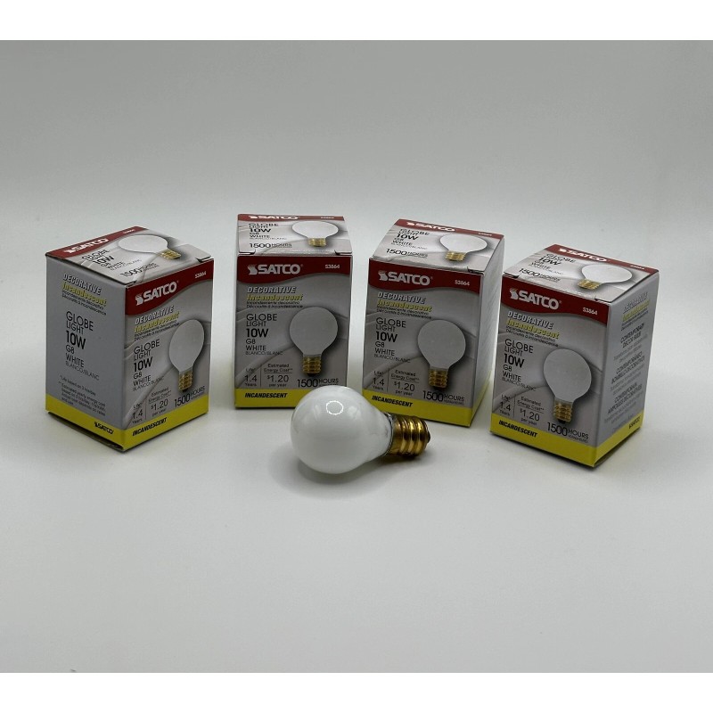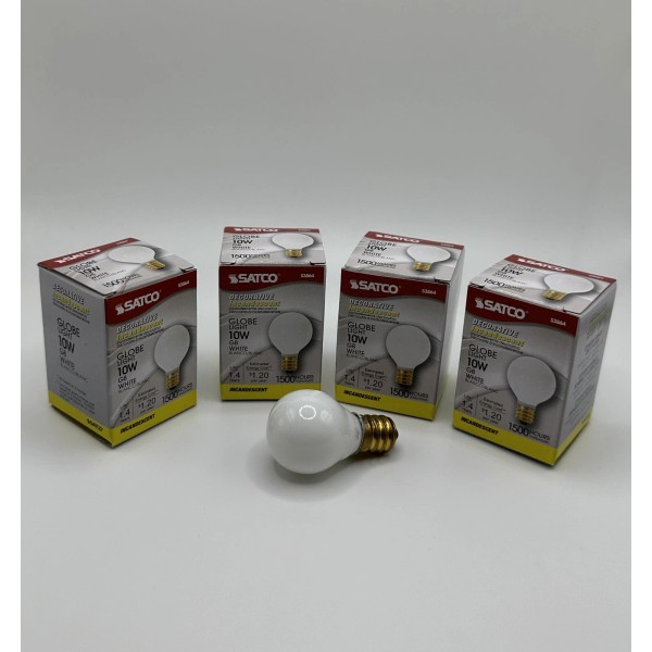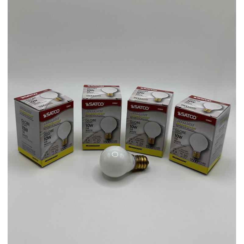 Up for sale is a lot of 4 Satco 10 Watt Globe White G8 light bulbs.