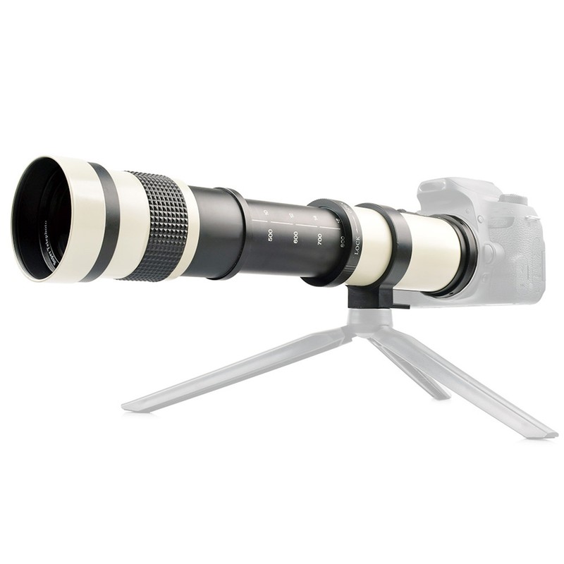White 420800mm Aperture F 8.316 Full Manual Focusing Telescope Zoom Telephoto Lens for EF‑S Mount Camera