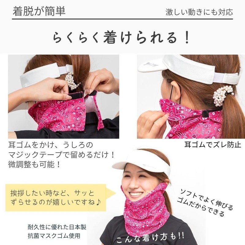 - Prevents sunburn on your face and neck (uses functional fabric with a UV reduction rate of over 98%) and the cheeks are prone to stains
