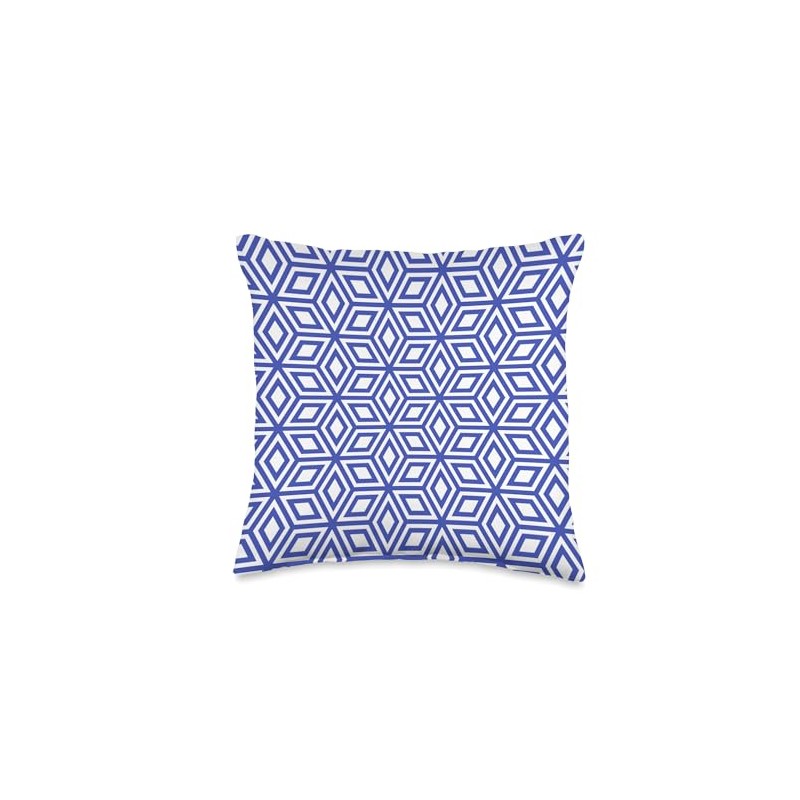 White Blue Square Cube Boxes Geometry Repetitive Pattern Throw Pillow