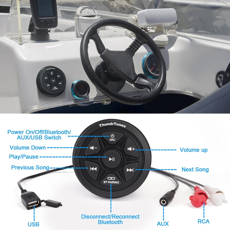 With ThunderTunes Marine Audio Receiver you can add streaming music to almost any stereo system. This IPx6 waterproof unit fits standard 3" tachometer gauge openings and easy to mount, so you can enjoy music from your smartphone playlist or streaming music on apps. The USB adapter evens lets you plug and play tunes from your MP3 player or media stick. Whether you want to relax in your spa tub with cool jazz wafting over you, or launch your party boat with friends, the Marine Stereo lets you enjoy the hot sounds of summer anytime, anywhere.