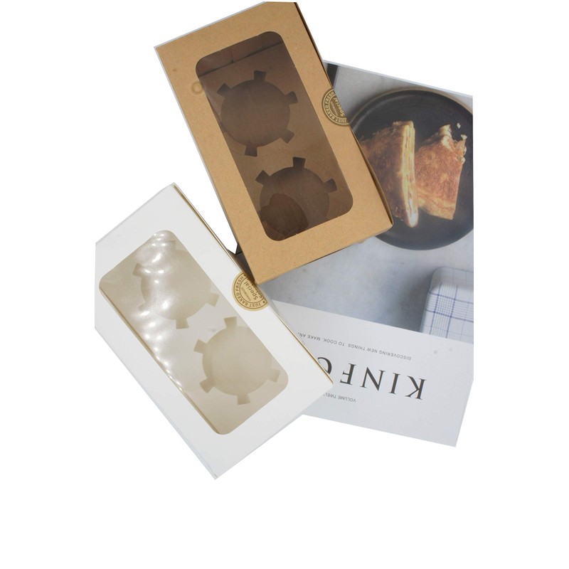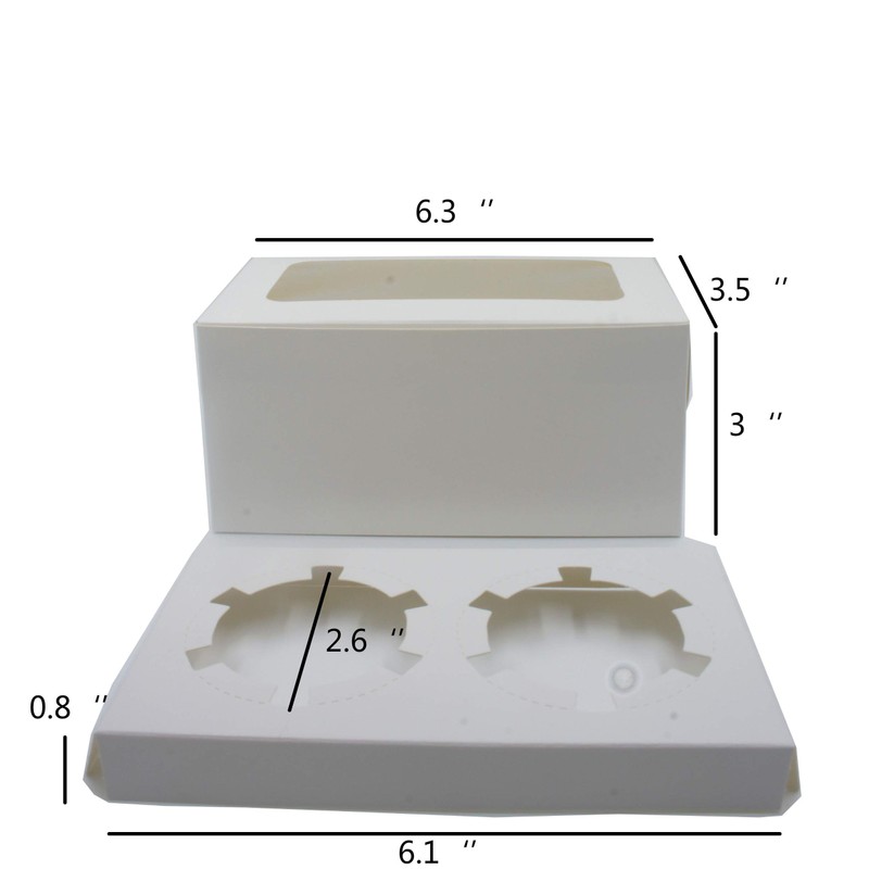 White/Brown Bakery Cupcake Box with Display Window & Cupcake Insert Fits 2 St...