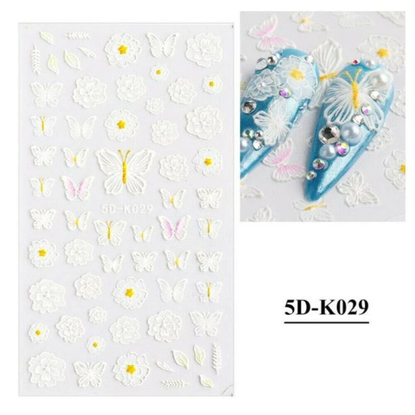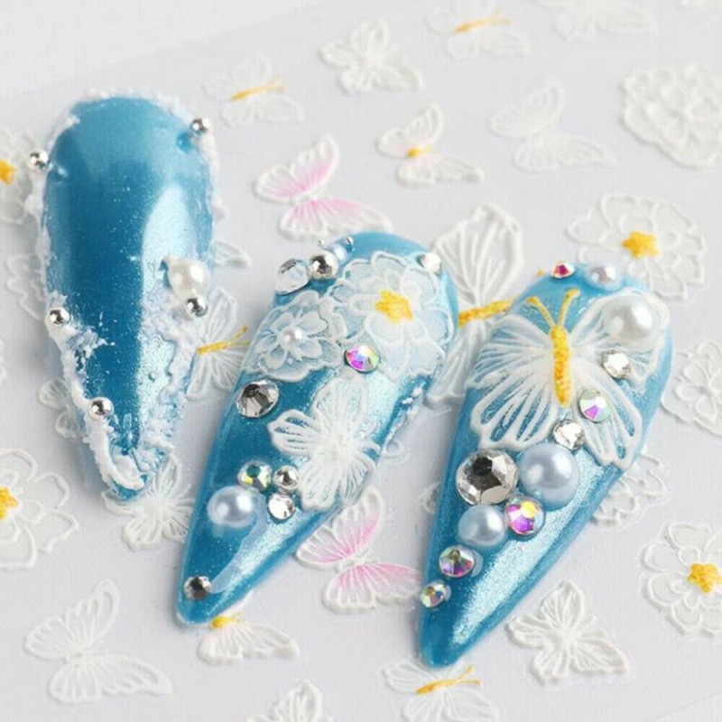 White Butterfly Flower Wedding 5D Nail Stickers Embossed Decals Art Decoration