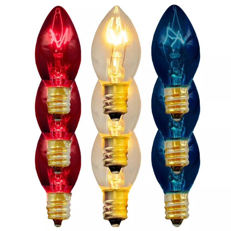 White C7 4th of July Steady Clear Holiday Lights Red White & Blue 25 Replacement Blubs