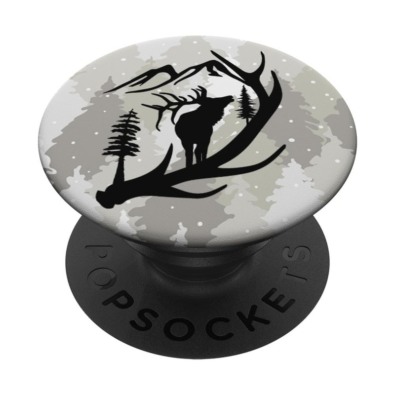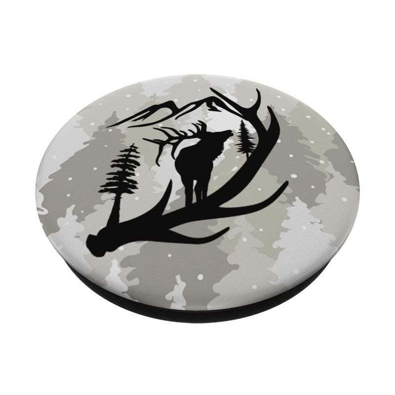 White Camo Elk Funny Buck Deer Hunting Mountain Forest Idea PopSockets PopGrip: Swappable Grip for Phones & Tablets PopSockets Standard PopGrip