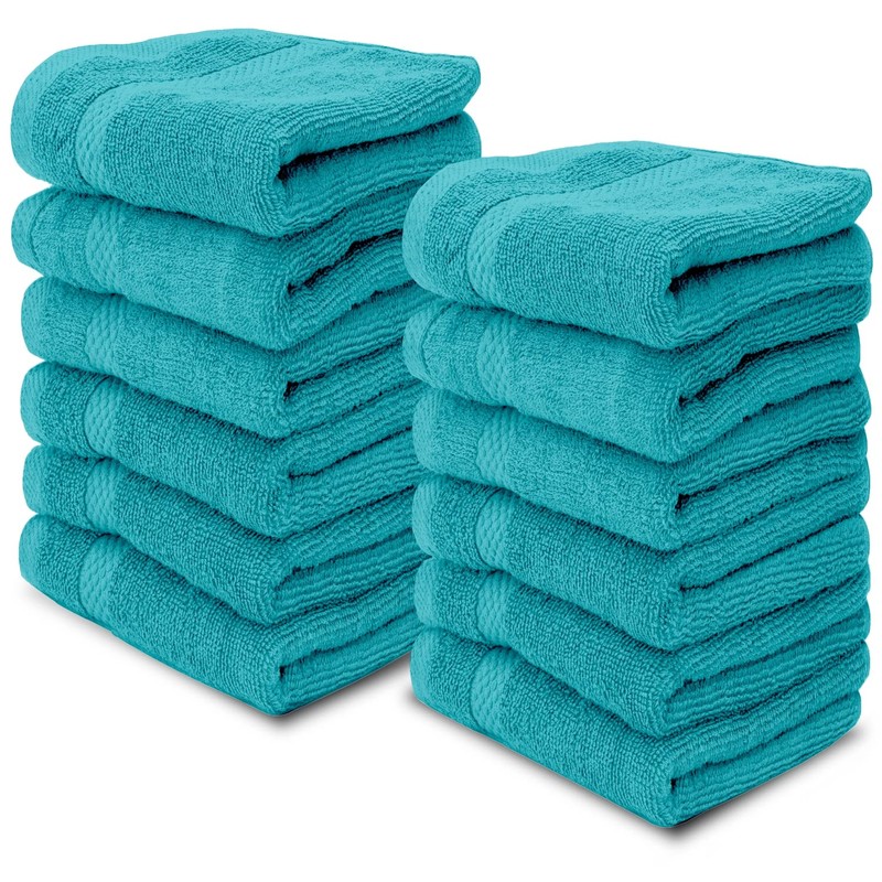 - Colección de hotel: 12 toallas de baño tienen un tamaño generoso de 13 x 13 pulgadas. Cada toalla es 100% algodón peinado, suave, duradera, de secado rápido y maravillosamente absorbente. Es más absorbente que cualquier toalla facial de algodón turco.