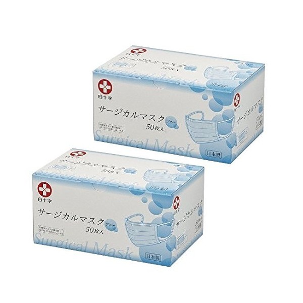 White Cross Surgical Mask, Blue, Regular Size, 50 Sheets x 2 Boxes
