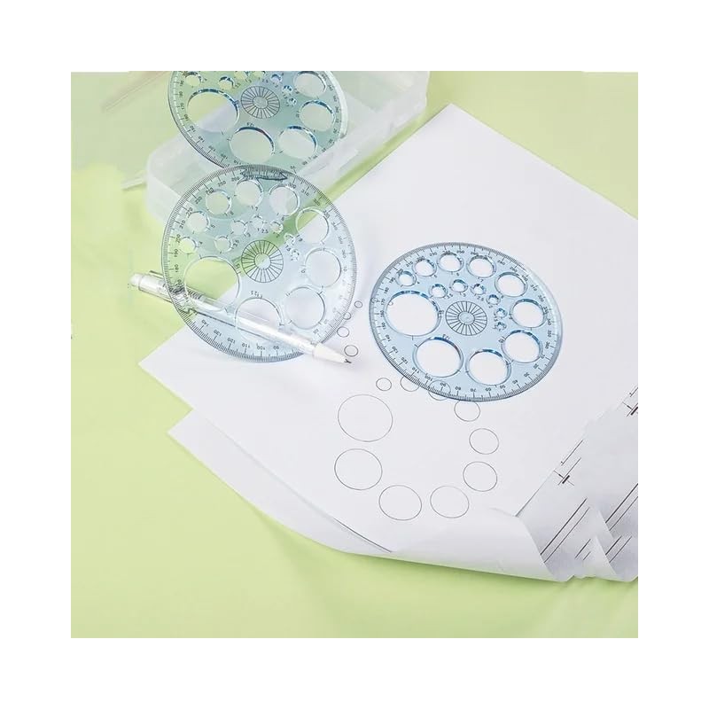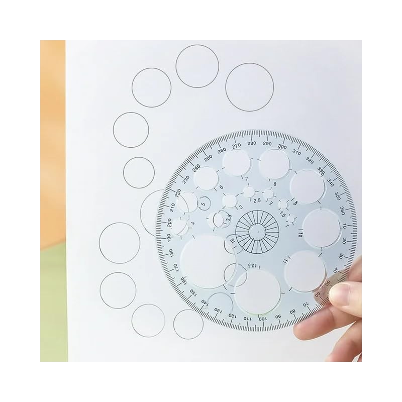 White Full Circle Template Plastic Round Protractor 360 Degree for Painting Drawing Drafting Tool 16 Circular Sizes,Technical Drawing Supplies,Protractors