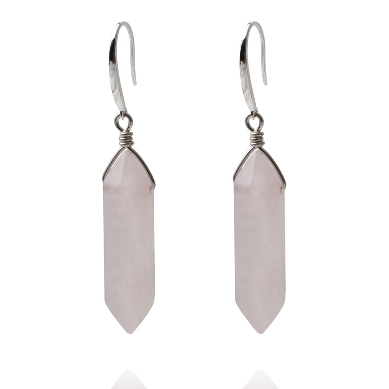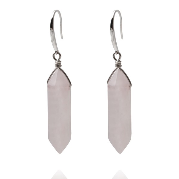 **Natural rose quartz, which hand polished into pointed ends hexagonal column, professional wiring work on top, match up a pair of earrings