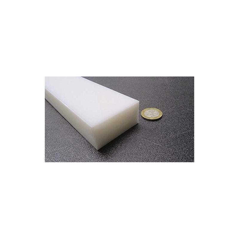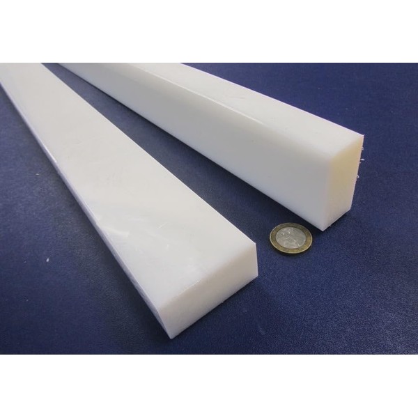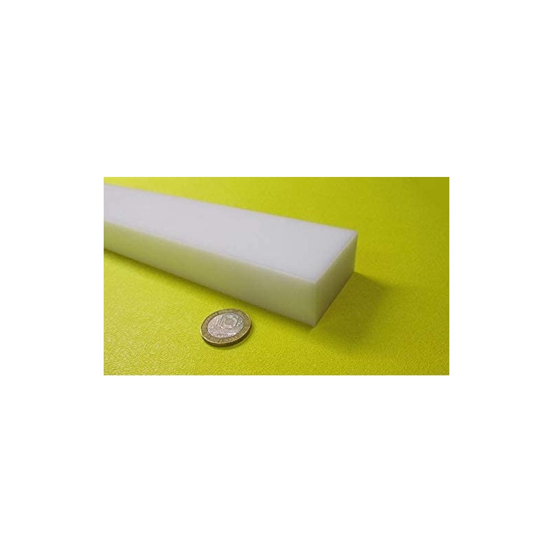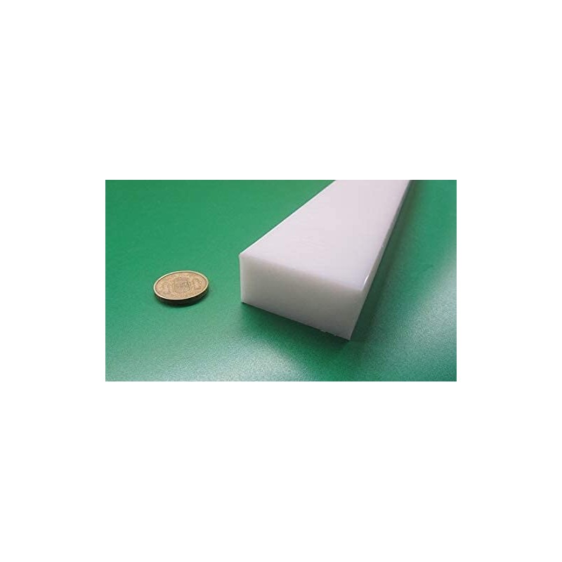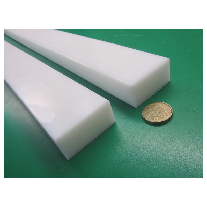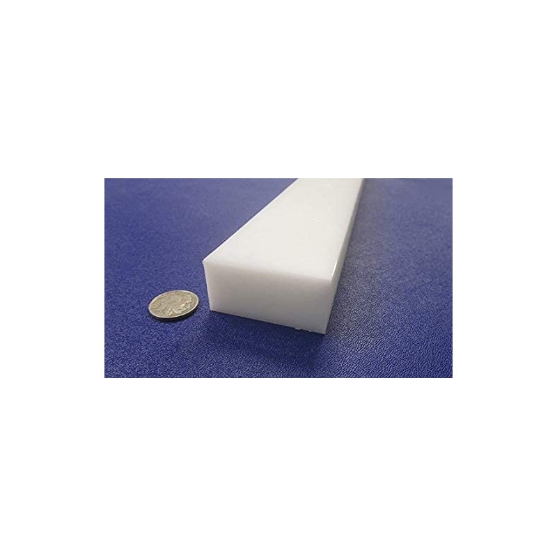 White HDPE (High Density Polyethylene) Rectangular Bar 1.00" (1") x 2.00" (2") x 48" Chemical- and corrosion- resistant No moisture absorption High tensile strength Non-toxic Non-staining