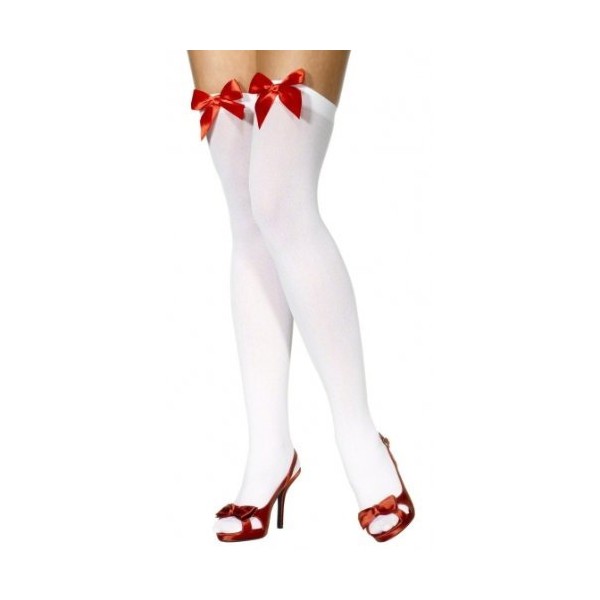 • White holdup stockings with red bows