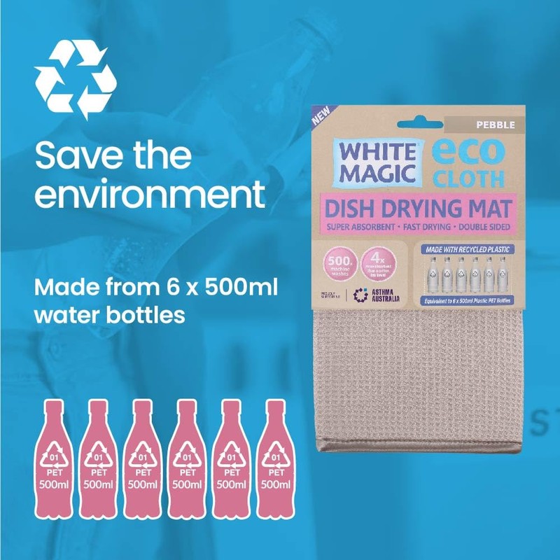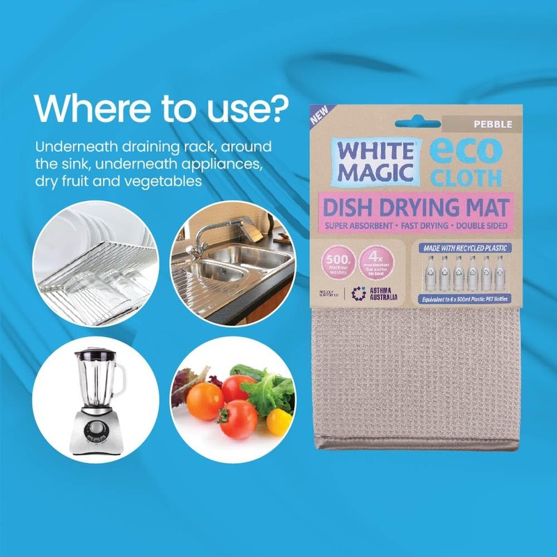 White Magic Eco Cloth Dish Drying Mat Multi Colour Options (Pebble), 40 x 45cm
