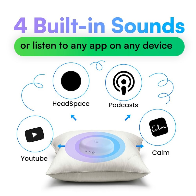 - Effortless Sleep Solution: Streamline your bedtime routine with our no-app-needed pillow speaker, or connect to your favourite apps like Calm, Headspace, Podcasts. Audible, etc.