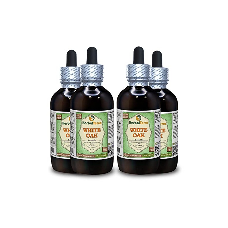 White Oak (Quercus Alba) Glycerite, Organic Dried Bark Alcohol-Free Liquid Extract (Brand Name: HerbalTerra, Proudly Made in USA) 4x4 fl.oz (4x120 ml)
