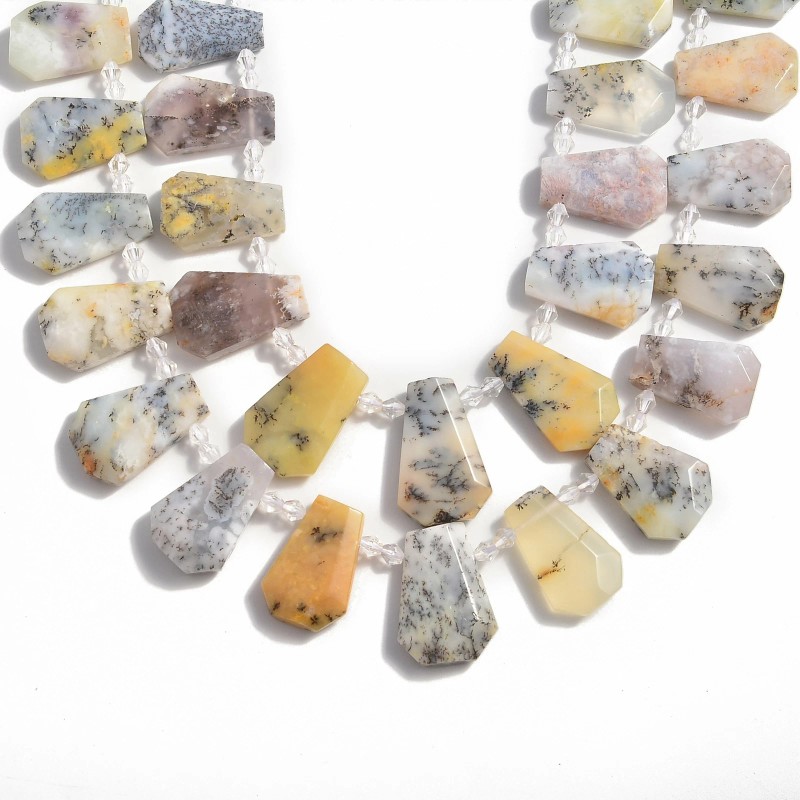 White Opal Graduated Faceted Trapezoid Beads 15x20 -18x27mm 15.5" Strand