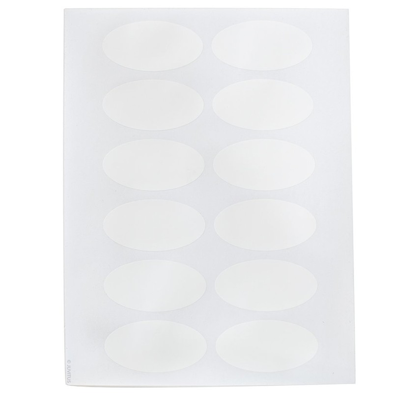 White Oval Waterproof Essential Oil Labels for Bottles & Jars – 3.0" x 1.5" Oval, 5 Sheets, 60 Labels