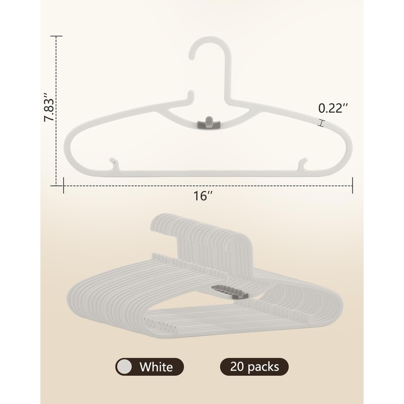 - 【Light & Nice Design】Our white plastic hangers 20 pack would be the ideal gifts for your friends & family members. No shoulder bump hangers, No slip hangers, Plastic clothes hangers, hangers thin but shrong and light weight clothes hangers