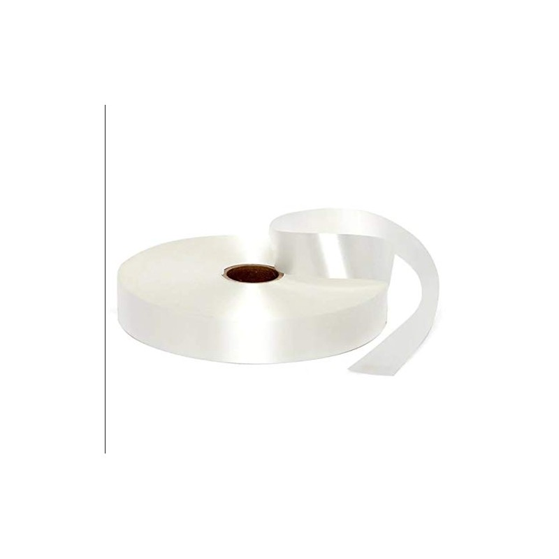 White Plastic Ribbons 3/4" X 250 Yards - This 3/4" X 250 yards White Poly Ribbons is made from the highest quality of polypropylene on the market. The texture is smooth and flat with a beautiful satin finish that can be seen on both sides. Waterproof and spill resistant.