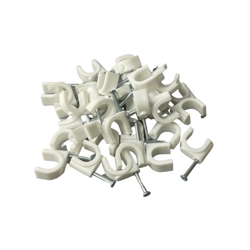 White Round Cable Clips with Fixing Nail K-Type 50pcs (12mm)