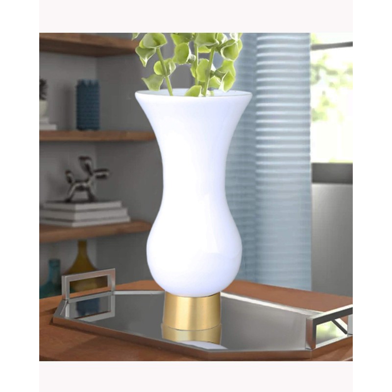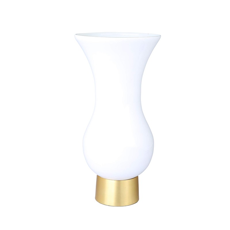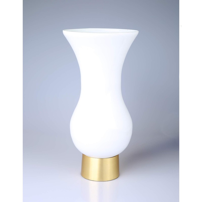 White S-shaped Glass Vase with Gold Base, 11.5"H