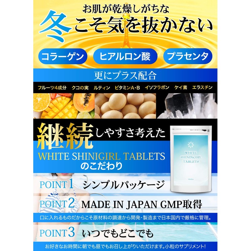 WHITE SHINIGIRL TABLETSは、ビタミンを中心に貴方のお肌をサポートします。