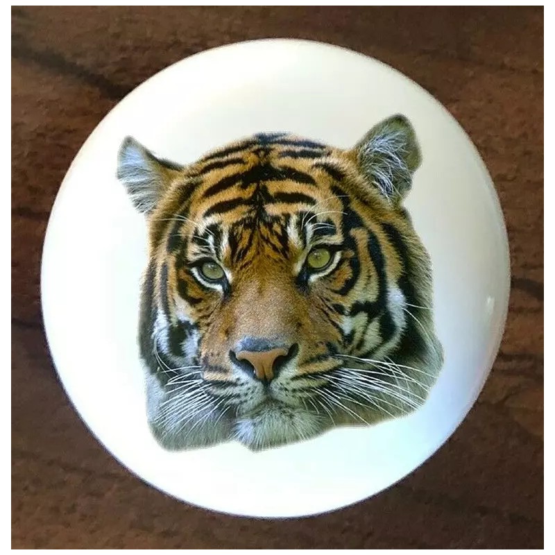 Add a touch of the wild to your cabinets and dressers with these white ceramic tiger head knobs. The polished finish adds a sleek look to any room, while the 1 inch height and 1.5 inch width make them suitable for both kitchen cabinets and dressers. Made with high-quality ceramic material, these knobs are durable and perfect for long-term use. They come in a set of [number] and are easy to install. Perfect for anyone looking to add a unique and stylish touch to their home decor.
