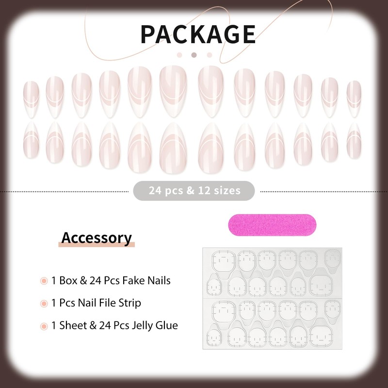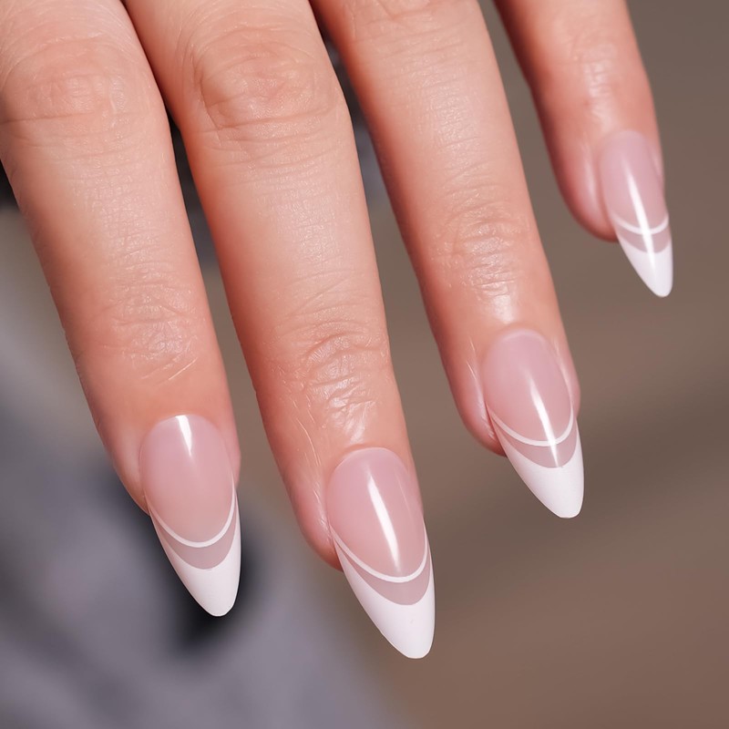 White Tip Almond Press On Nails