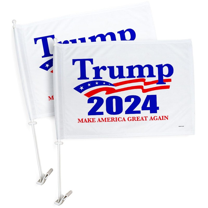 White Trump 2024 Flag For Car 2 PcsRed Bandera Para Carros Window Clip Pole Mount Kit Rally Shooting 2024 Poster President 47 Auto Decor MAGA Sign Outdoor Decorations Republican Gift Made In USA