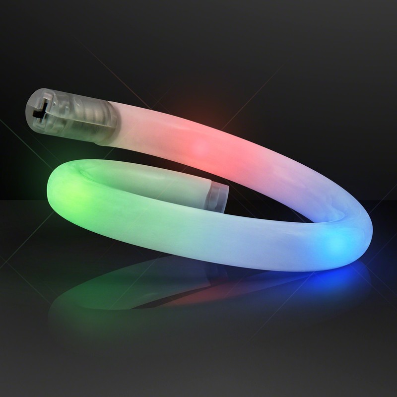White Tube Light up Bracelets with Flashing Rainbow LEDs (Set of 12)