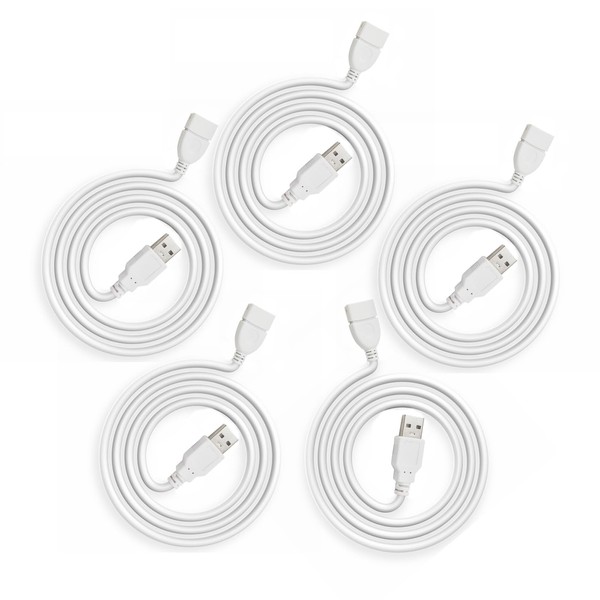 White USB Extension Cable 3ft 5 Pack Bulk, USB A 2.0 Male to Female Extender Cord for Printer, Mouse, Keyboard, 480Mbps Transfer Speed