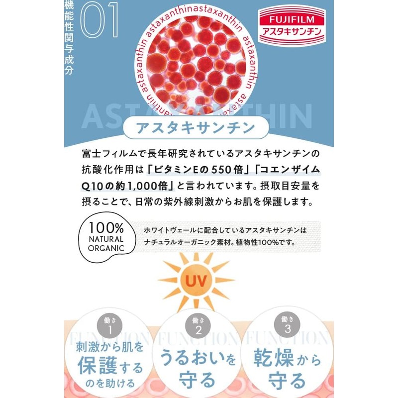 White Veil Premium UV Protection (1 Bag) Approx. 1 Month Supply of Astaxanthin Supplement, Food with Functional Claims