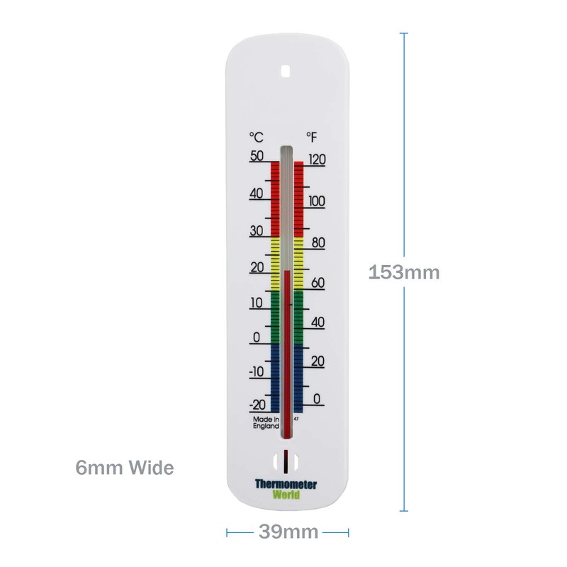 Indoor Wall thermometer with clear, easy to read temperature scale on white moulding with colour coded temperature zones. The Indoor thermometer is suitable for indoor and outdoor use. The plastic wall thermometer is ideal for use in the home, office, greenhouse or the garden. Room temperatures can be measured in both °C and °F.