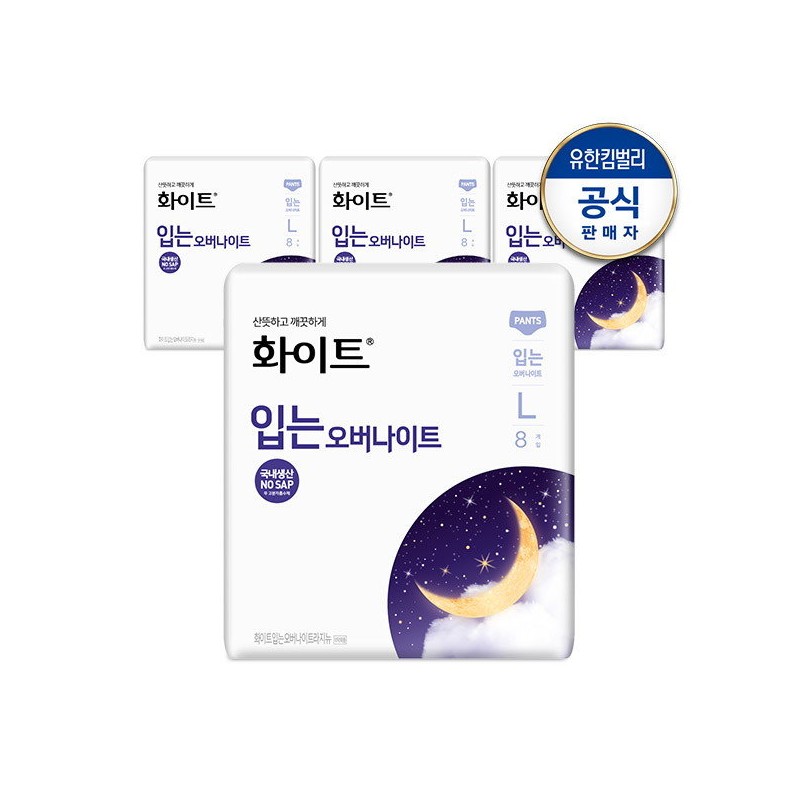 White Wearable Overnight Medium/Large 8x4, Medium 8 Sheets x 4 Pack / 화이트 입는오버나이트 중/대 8x4, 중형 8매x4팩