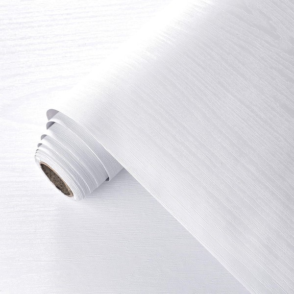 White Wood Contact Paper Peel and Stick Wallpaper 15.7"x 393.7" Vinyl Wood Grain Wall Paper Thicken Textured Self Adhesive Removable for Furniture Wall CounterTop Peel and Stick Waterproof