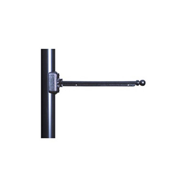 Easily hang your sign from a pole using the Whitehall Hanging Sign Mounting Arm. This arm offers classic styling, with a sturdy mounting bracket on one end and a delicate round finial completing the opposite end. The black color adds a timeless feel, perfectly accenting your signage. This item easily mounts to a pole using the included sheet metal screws, and two predrilled holes on the underside of the arm accommodate your Whitehall Two-Sided Hanging Sign (not included). The aluminum construction will last for several seasons, for a stately sign for years to come. Display your hanging sign using this Hanging Sign Mounting Arm. Dimensions: 18"L x 2"W x 4"H Mounting: pole mount Construction: aluminum