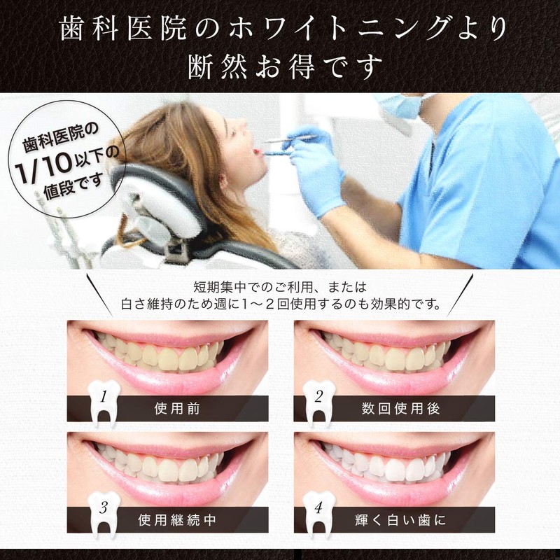 - 1/10 Cost: Less than 1/10 of the price of whitening done by a dentist. It is good for short periods of concentration, and it is effective to use 1-2 times a week to maintain whiteness