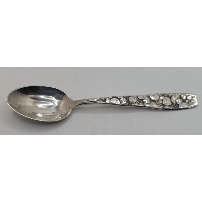 This listing is for a single sterling silver demitasse spoon by Whiting in the Berry - Partridgeberry pattern.