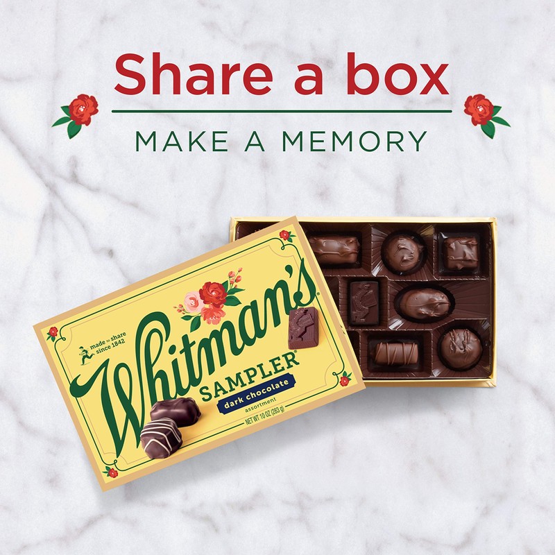 The Whitman's Sampler is a great gift that’s ideal for everyone, and any occasion. With its assortment of dark chocolates with caramel, coconut, cashew, butter cream, peanut, vanilla, orange, and fudge fillings, the box makes a great sharing experience and is perfect for birthdays, Mother’s and Father’s Day, graduations, anniversaries, or any special occasion. Since 1842, Americans have been making connections and enjoying sweet, quality moments with Whitman’s chocolate. We are proud to have been shared and savored by generations.