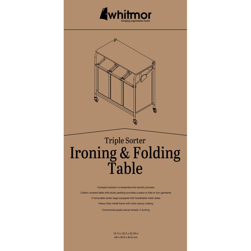 Whitmor 3 Section Rolling Laundry Sorter with Folding Station - Ironing Board, Chrome / Gray
