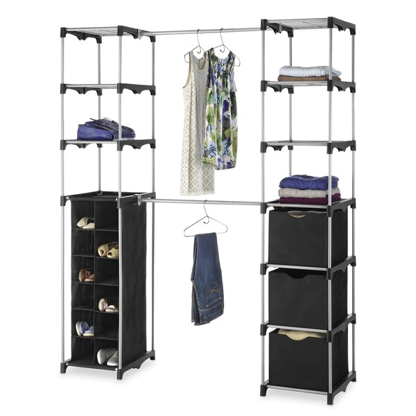 - Closet organizer is made of durable silver epoxy-coated metal frame, wire shelves and resin connectors