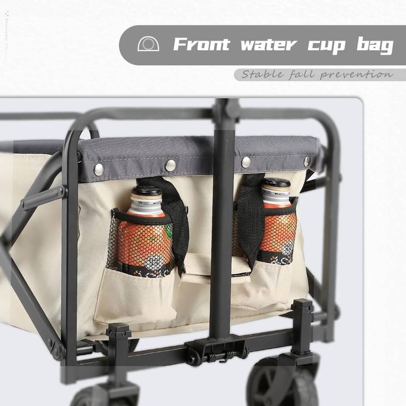 WHITSUNDAY Collapsible Folding Garden Outdoor Park Utility Wagon Picnic Camping Cart 5“ Solid Rubber Wheels (Beige, M-Foldable)