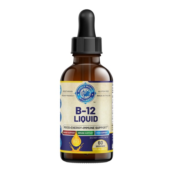 WHOLE WORLD WELLNESS Vitamin B-12 Complex Liquid Drops, Supplement. USA Made.