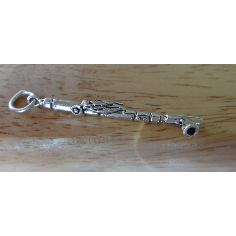 • Sterling Silver 3D 34x6mm Indian Peace Pipe with feather Charm