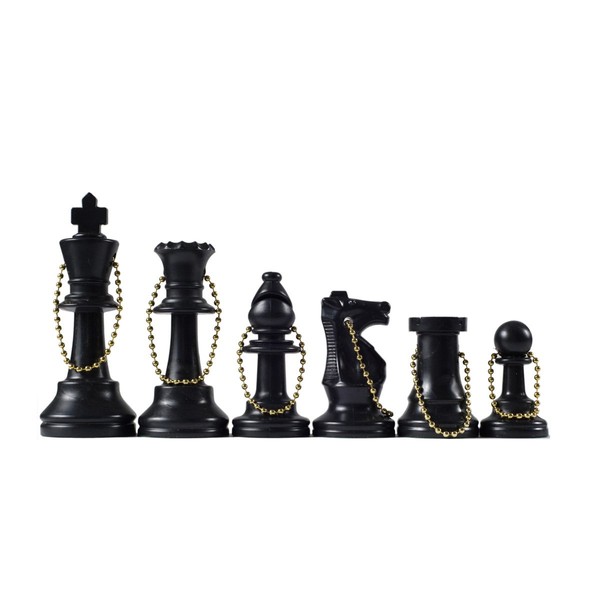 Our chess keychain sets now come in fun, bright colors as well as traditional black and ivory. Each set comes with 17 pieces (half the board plus an extra queen) and are fitted with the chain through a hole in the piece. King size is standard 3.75". Kids love these keychains for their keys or to attach to their bags backpack straps to show their love of the game! These keychains are perfect for giveaways and prizes.