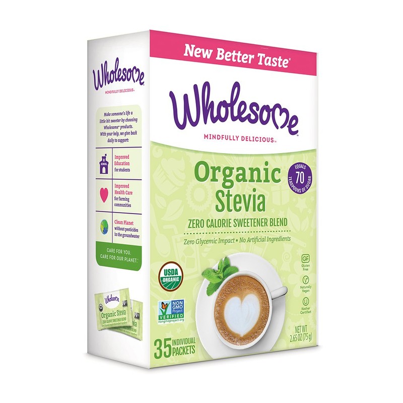 Say goodbye to the pink, blue and yellow packets! Wholesome! Organic Stevia is